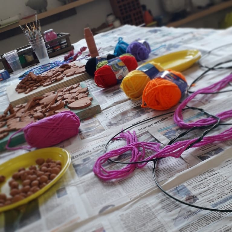 Strumenti di lavoro, colori e materiali per le tue produzioni in terracotta.